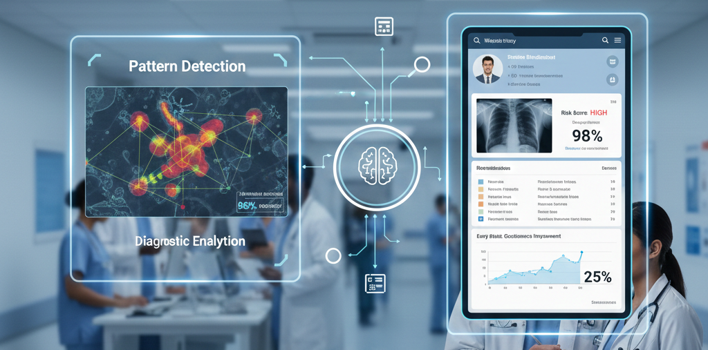 It classifies findings—acute, sub-acute, and risk-based—while continuously optimizing workflows for clinicians, nurses, and hospital administrators